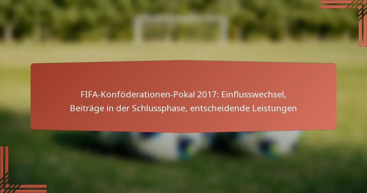Impact-Wechsel während des FIFA-Konföderationen-Pokals 2017 beeinflussten die Ergebnisse der Spiele erheblich und zeigten die Tiefe des Kaders jedes Teams. Trainer setzten Ersatzspieler strategisch ein, um die Dynamik der Spiele zu verändern, was zu entscheidenden späten Beiträgen und Leistungen führte.